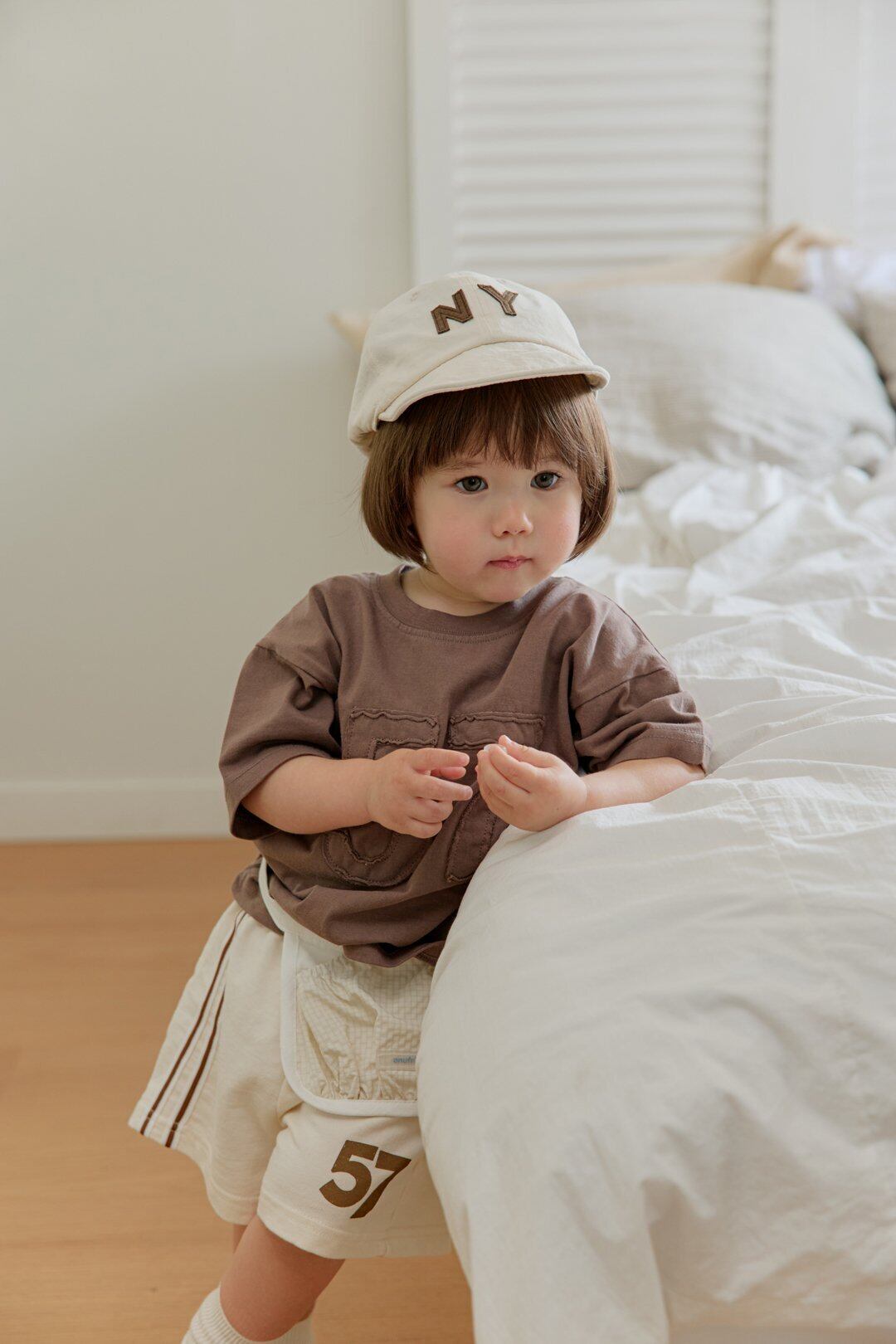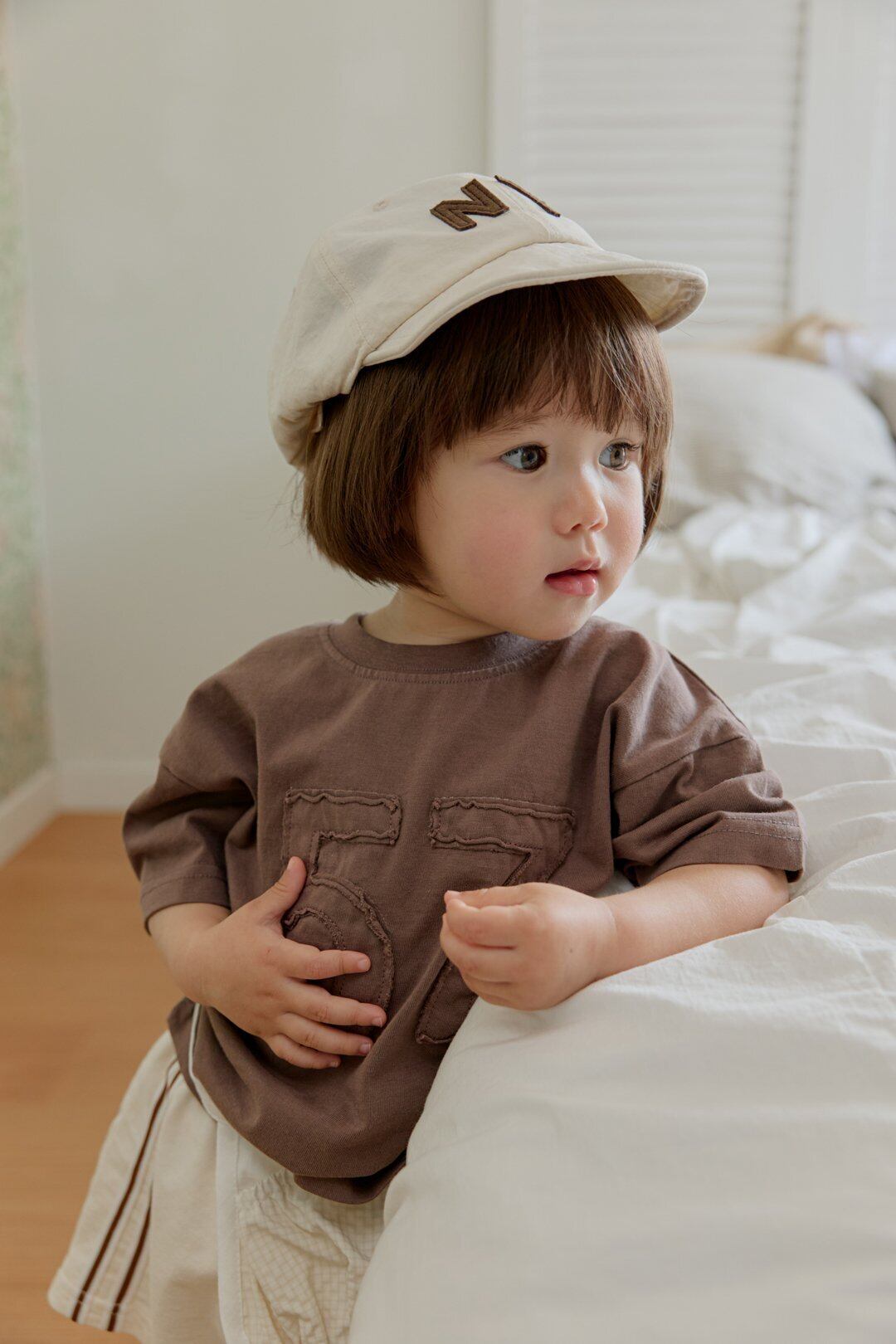 ・切りっぱなしのナンバーパッチが織りなす、ヴィンテージな表情。お外遊びの日も品よく、こなれた印象に